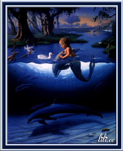 海豚在无边无际的大海里自由自在的跳跃、嬉戏 但有些人把它们的伙伴限制在池塘里供人观看、娱乐